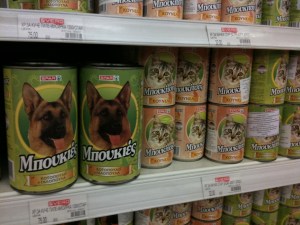 I dropped my bags off in the room and set out to get a bite to eat, and maybe a taste of the neighborhood. Skopje, the capital, is an eclectic mix. It’s something of a cross between soviet bauhaus architecture and Los Angeles suburban sprawl. Each block is dotted with residential high rises with forms following their functions straight into snoozeville. But there’s a lot of open green space, and tons of little playgrounds (you know: for kids). Right across from my hotel is a park, and just beyond that a super market. Here I can not only load up on the local currency (denars), but also do a broad survey of their consumer products.